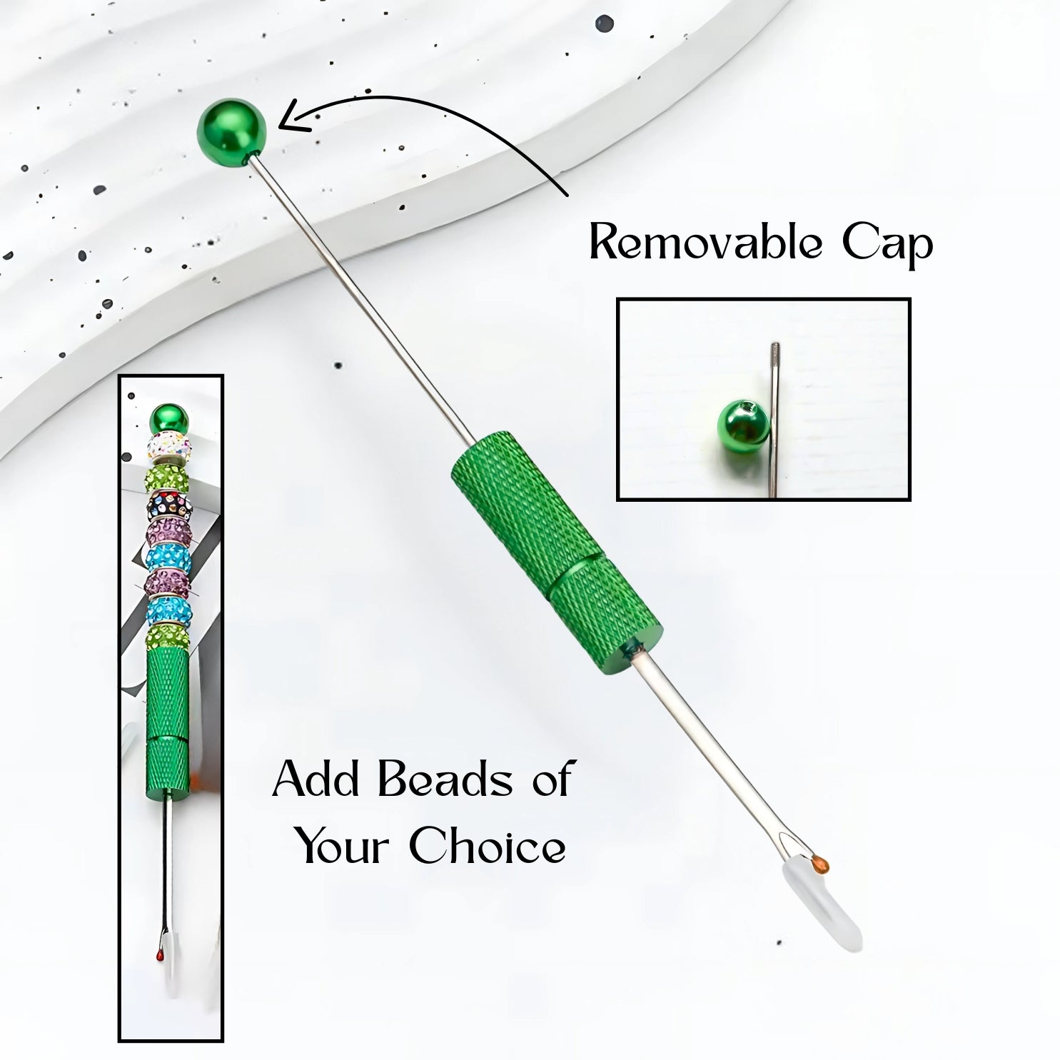 The ergonomic grip offers a steady hand for precise stitch removal, making this stitch opener as functional as it is beautiful. The best part? It’s beadable—you can unscrew the top and add your own beads to personalise it with a little sparkle and flair. A perfect blend of sophistication and customisation, this seam ripper becomes your go-to tool for every delicate undoing.