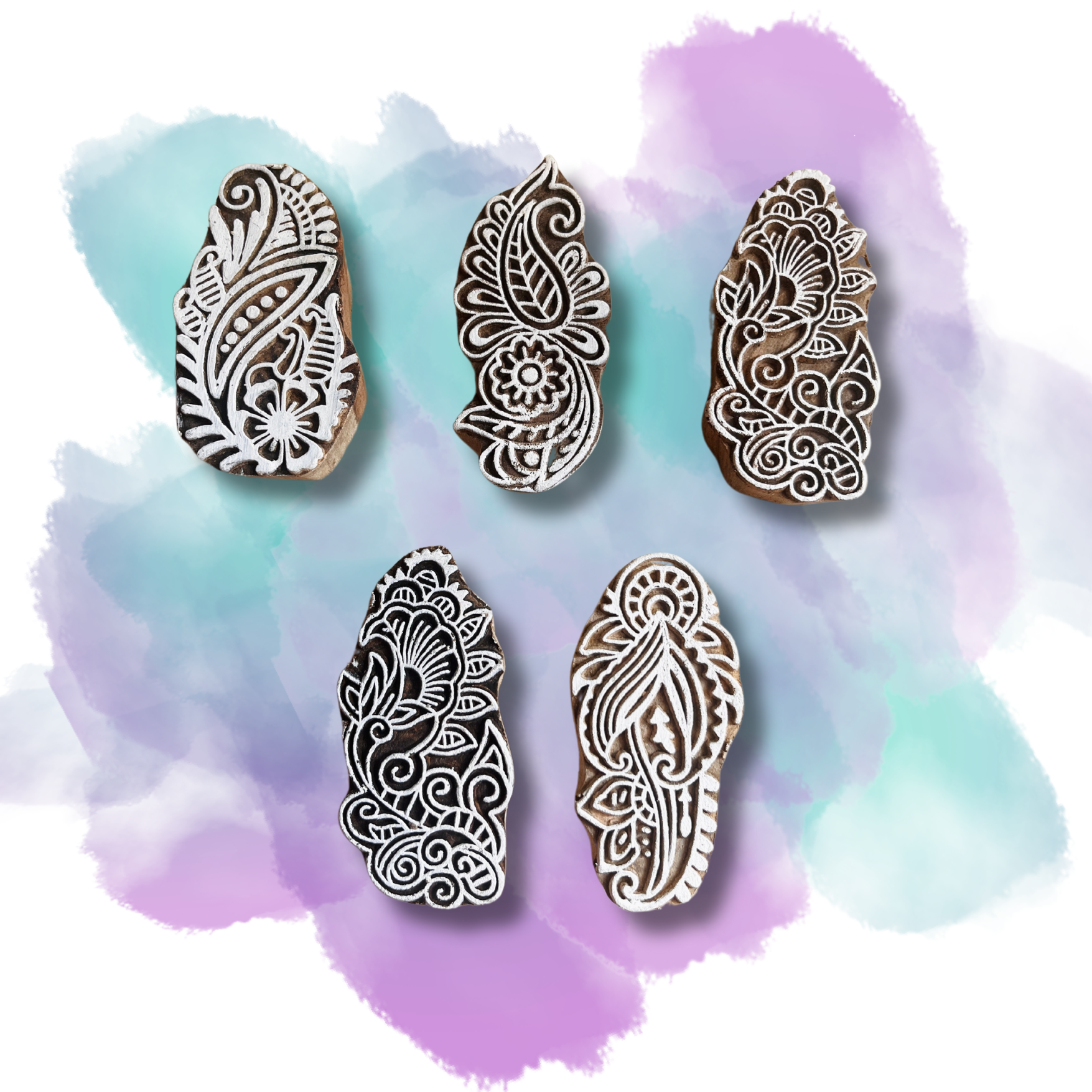 Elevate your textile artistry with this captivating set of 5 wooden block printing blocks! Each block print features a stunning paisley design, allowing you to create unique and mesmerizing patterns on fabric.