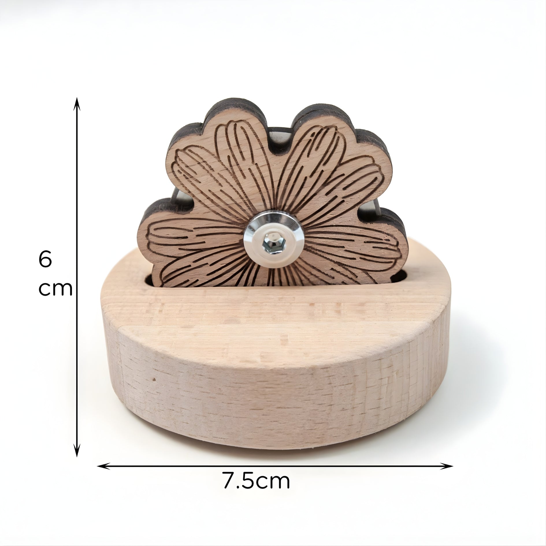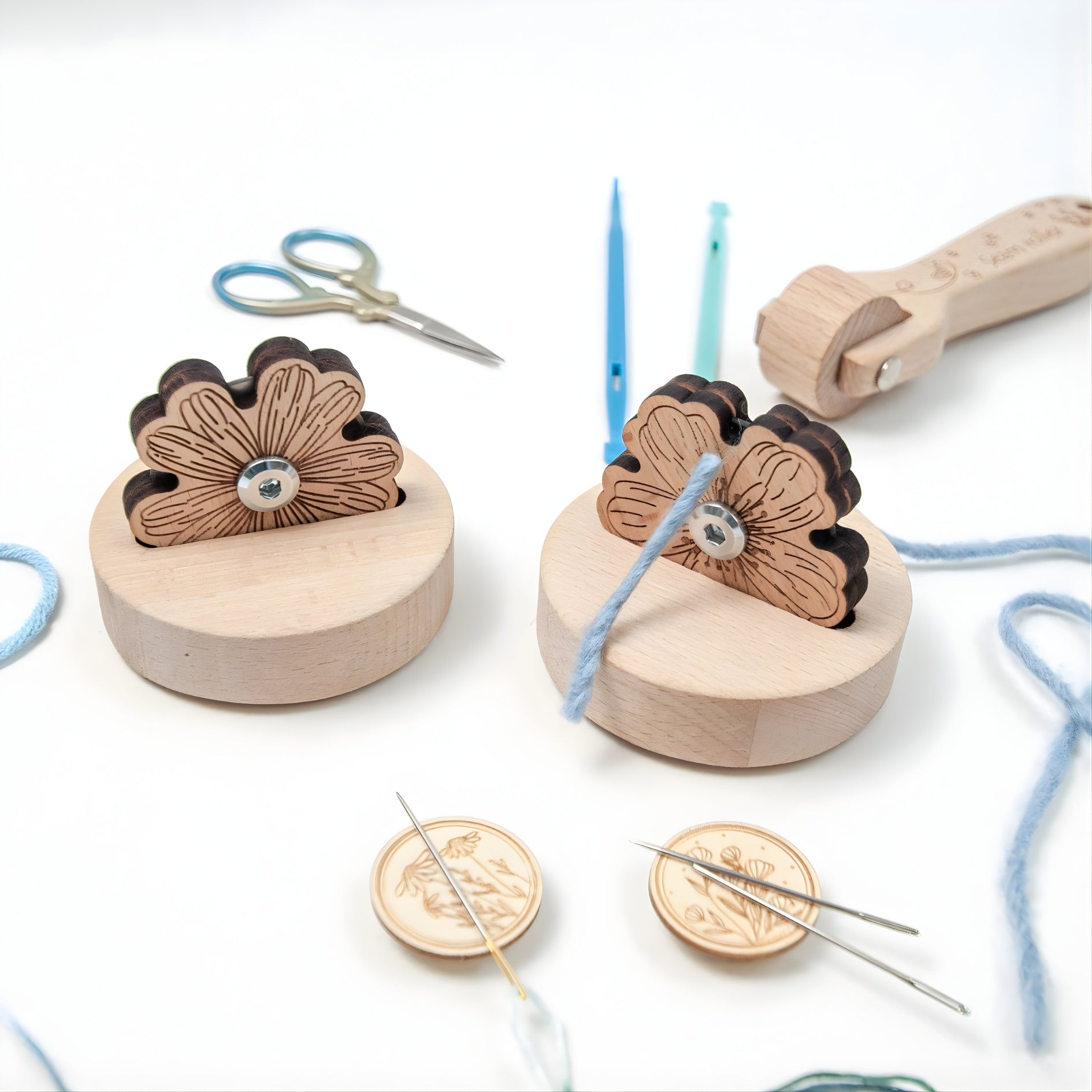 The solid wooden base gives it a reassuring weight on the table, while the sculptural floral top adds a quiet decorative touch. Both functional and calming to look at, it’s the kind of tool that naturally stays within reach during embroidery, hand sewing, and detailed craft work.