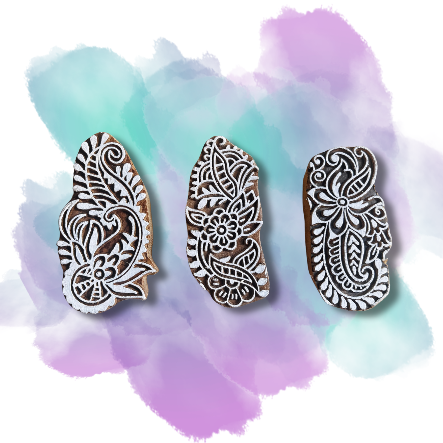 Elevate your textile artistry with this captivating set of 3 wooden block printing blocks! Each block features a stunning paisley design, allowing you to create unique and mesmerizing patterns on fabric.